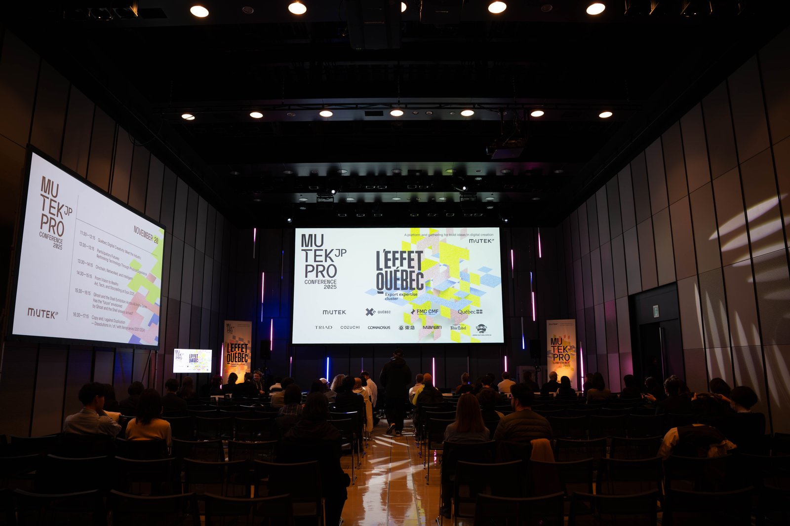 MUTEK.JP 10周年記念となる『MUTEK.JP Pro Conference』日本国内外のアーティスト、クリエーター、研究者、テクノロジスト、業界イノベーター、企業リーダーが登壇し先進的なトークセッションなどを開催。カンファレンスでは L’Effet Québecとの協働により、カナダ・ケベック州のデジタル・クリエイティビティ業界を紹介する特別ショーケースなど、革新的なスタジオや文化機関が集結したイベントとなりました。